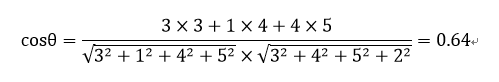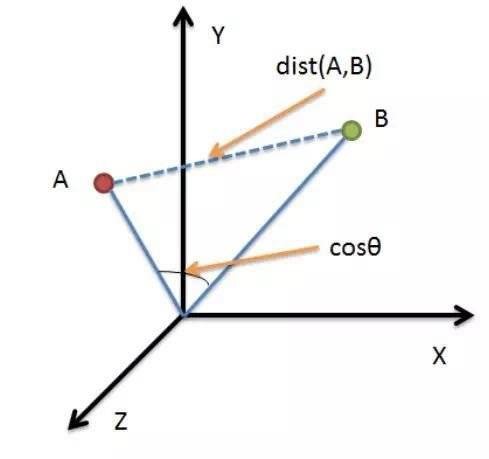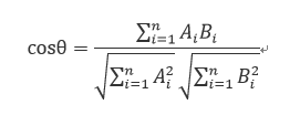 对于向量A和B而言,他们的在多维空间的夹角可以用向量余弦公式计算: