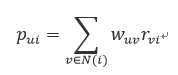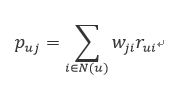 N(u)表示与用户有关联的歌曲歌单等集合,w_ji表示歌曲/歌单j和i的相似度,r_ui表示用户对i的打分。