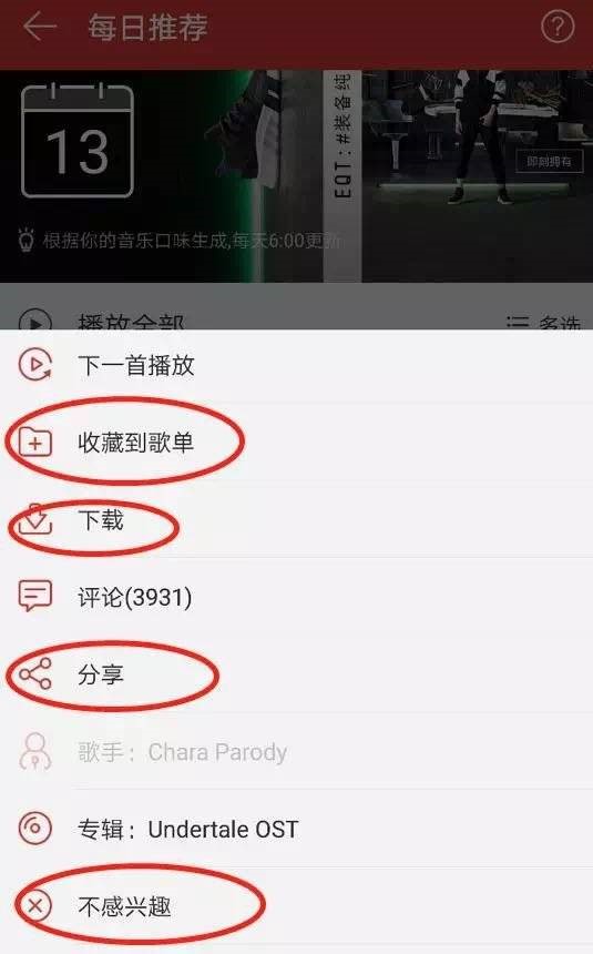 - 看见每日歌曲推荐>点击每日歌曲推荐>看见推荐列表>筛选喜欢曲目>点击喜欢曲目>获取音乐
