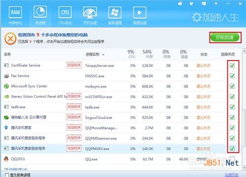 7、接着我们对这些残留的程序进行勾选,再启动--开启加速按钮开始清除。