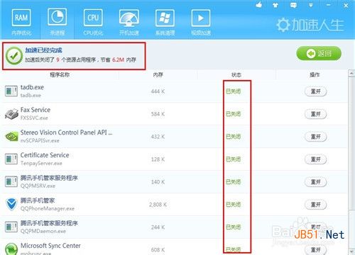 8、等待几秒就可以看到这些残留的程序就被关闭了,还可以减少内存的使用率。如下图。