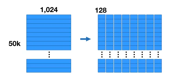 假设原始向量是1024维,可以把它拆解成8个子向量,每个子向量128维。
