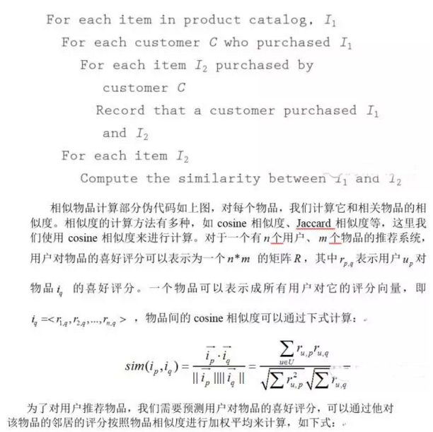 Item-based CF的基本思想是认为用户会喜欢和他以前所喜欢的物品相似的物品,其计算分为相似物品计算和用户喜好预测两部分,相似物品计算是整个算法的关键部分,用户喜好预测根据物品相似度加权预测用户对新物品的评分。