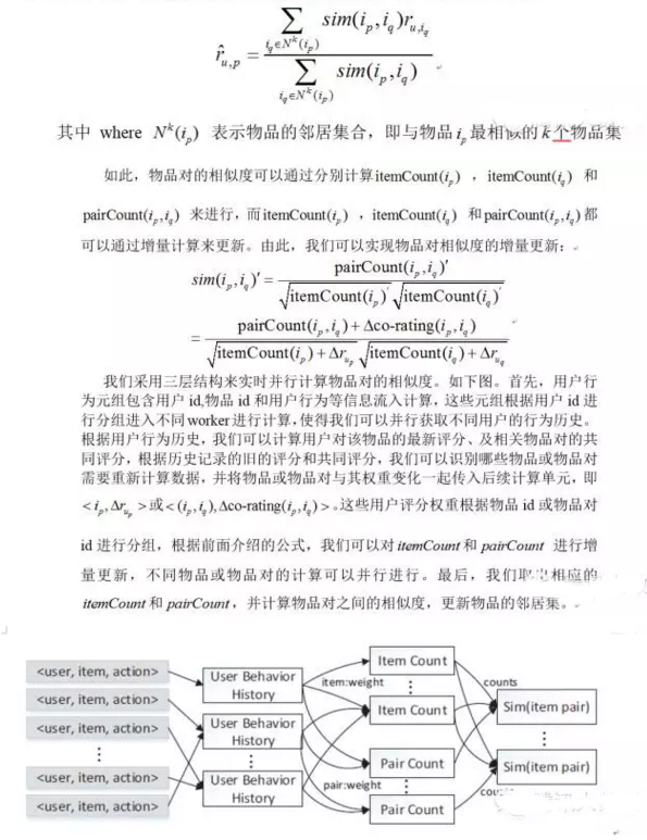 基于物品的协同过滤推荐[2](item-based CF)是亚马逊于2003年公布的推荐算法,由于其推荐效果较好且易于实现等特点,在工业界得到了广泛应用。这里我们以item-basedCF算法为例,解释实时推荐算法的具体实现[3],有关其他算法的具体描述可参考论文[3]和[4]。
