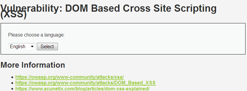 以上就是傲娇小懒猪最近收集整理的关于dvwa靶场第四周练习以及心得(3)XSS(DOM) DOM型XSS的全部内容,更多相关dvwa靶场第四周练习以及心得(3)XSS(DOM)内容请搜索靠谱客的其他文章。