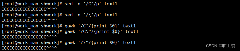 - ^ 匹配开头,作用于最开头 (开头之外的其他位置,那么它就跟普通字符一样,当^后没有字符时匹配时不需要转义,其他地方需要转义[sed 和gawk情况不同])