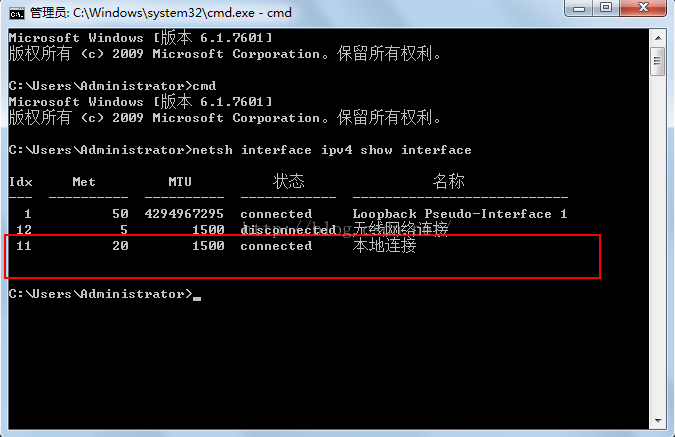 netsh interface ipv4 show interface