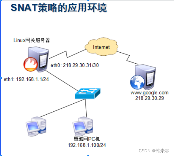 在iptables里添加一条snat的转发策略,让内网192.168.100.0的网络从ens33接口出去,出去的时候将源ip地址转换为192.168.0.165