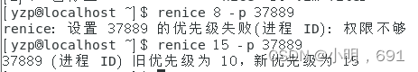 renice [x] -p 进程号(将某进程的优先级修改为x,普通用户只能修改的比之前的优先级低,而且可以设置运行中的进程)