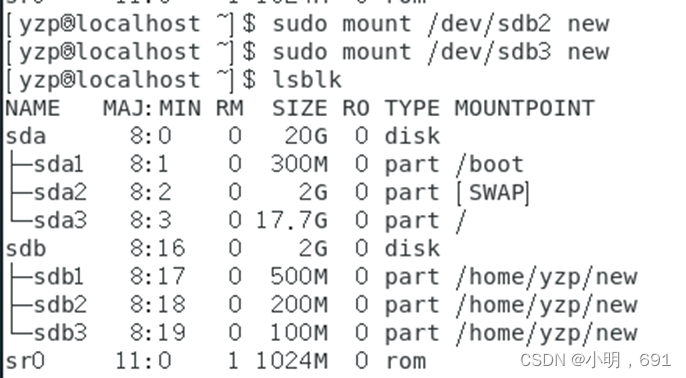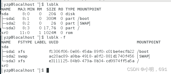 1、lsblk命令:nlsblk命令以树状结构显示系统中的所有磁盘及磁盘的分区