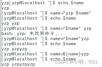 (2)UNIX/Linux中还可定义变量:name=yzp