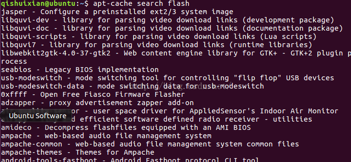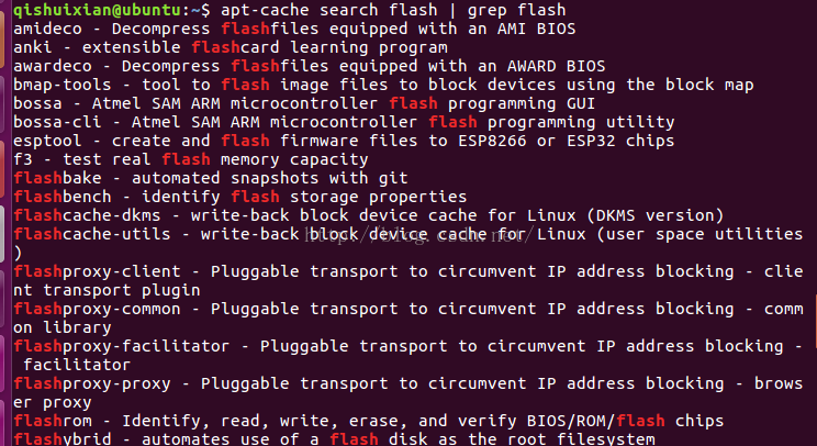 5、用grep进一步准确搜索 : apt-cache search flash |grep "^flash"