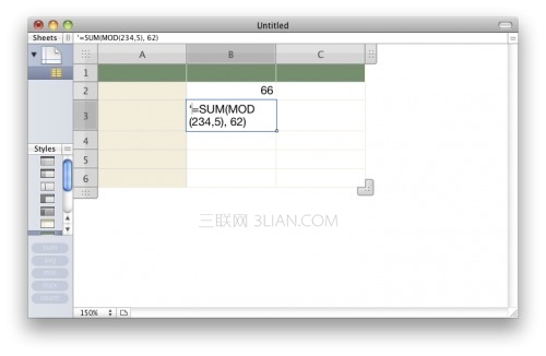 那么,问题来了。如果你在单元格里面确实想要显示一个公式怎么办呢?直接输入的话会变成计算的结果。其实很简单,只要在输入内容的等号前面加上一个单引号就行了。比如,如果你要显示上面例子里的公式,只要输入: '=SUM(MOD(234,5), 62) 就可以了。单引号会被删掉不显示。就像下面这样: