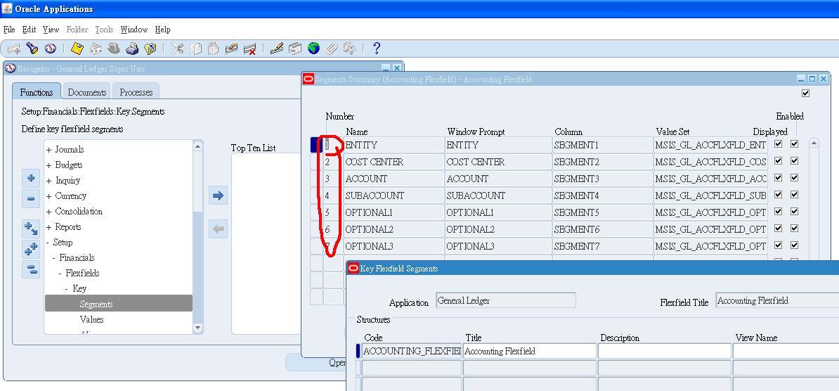 今天在设定r12 的AutoAccounting的时候,报APP-FND-00804错误,在网上找到了解决方法,是将会计科目弹性域的序号由两位数,改为1位数,就可以了。应该是oracle的BUG.如下图。