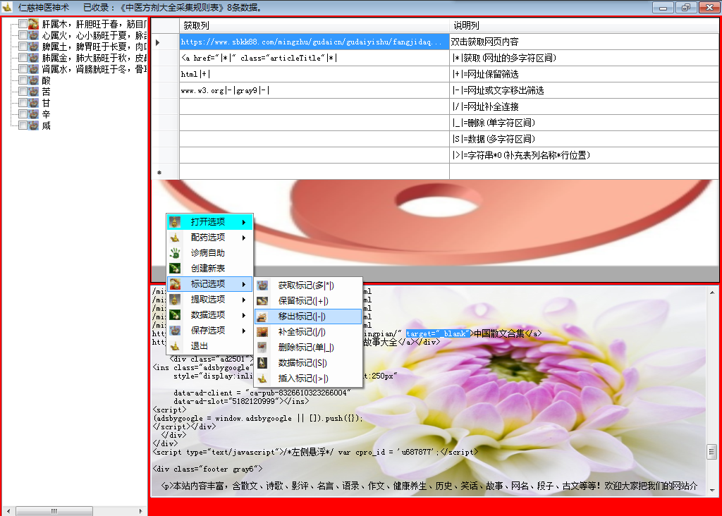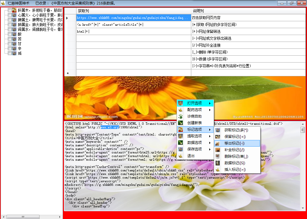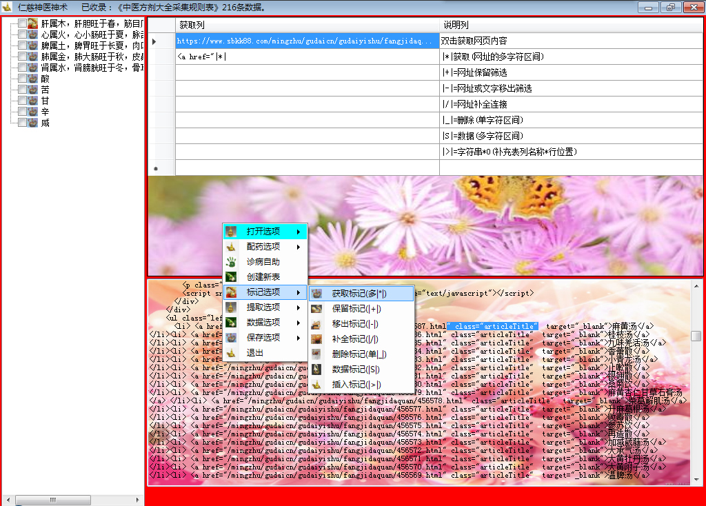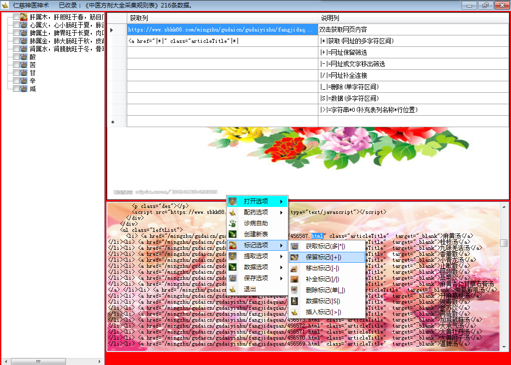 默认的是保留含有http的内容,这里看到的是隐藏头地址的网址,因此,需要选择保留筛选项,选中html设置为[保留标记];