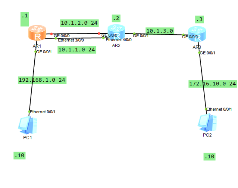 []ip route-static 172.16.10.0 24 10.1.3.3