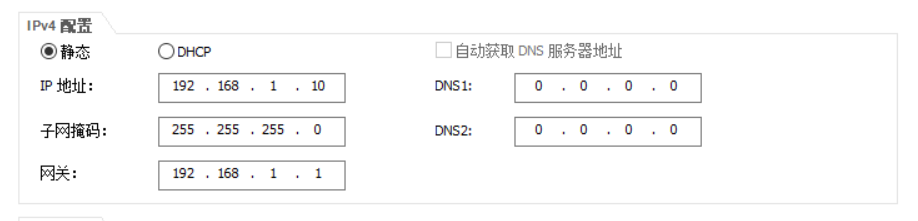 PC1:IP:192.168.10.100; 子网掩码:255.255.255.0; 网关:192.168.10.1
