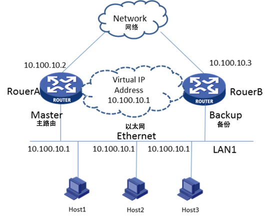 VRRP是一种选择协议,它可以把一个虚拟路由器的责任动态分配到局域网上的 VRRP 路由器中的一台。控制虚拟路由器 IP 地址的 VRRP 路由器称为主路由器,它负责转发数据包到这些虚拟 IP 地址。一旦主路由器不可用,这种选择过程就提供了动态的故障转移机制,这就允许虚拟路由器的 IP 地址可以作为终端主机的默认第一跳路由器。是一种LAN接入设备备份协议。一个局域网络内的所有主机都设置缺省网关,这样主机发出的目的地址不在本网段的报文将被通过缺省网关发往三层交换机,从而实现了主机和外部网络的通信