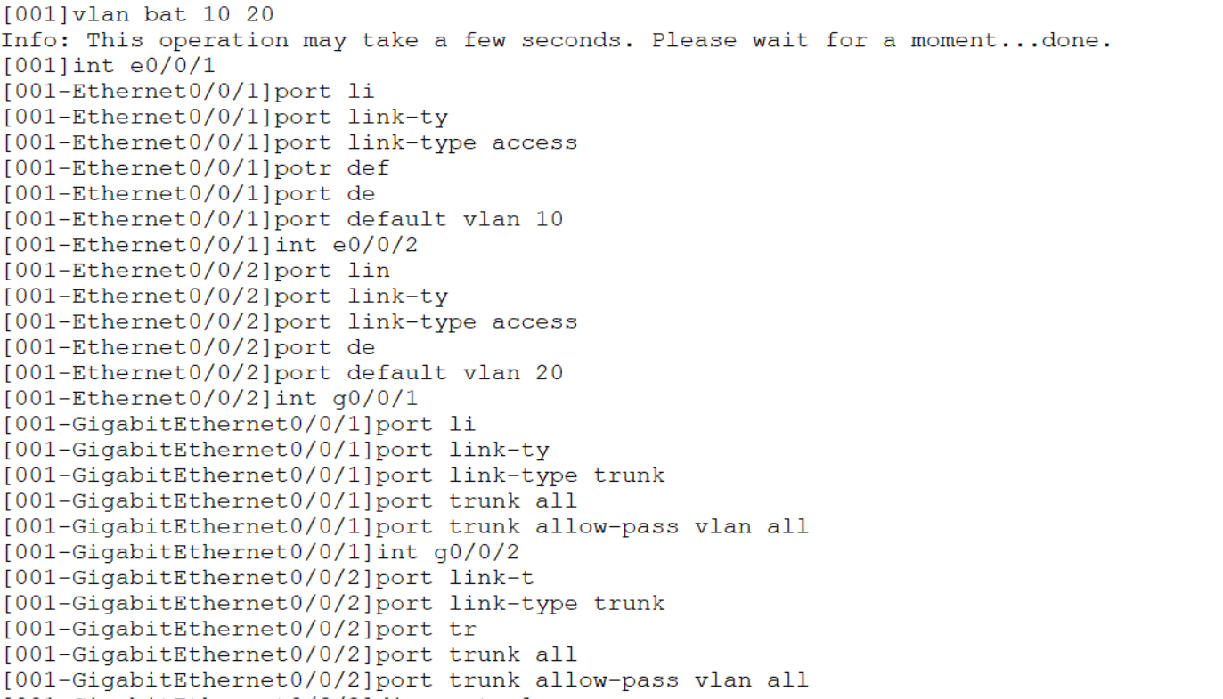 []vlan bat 10 20 200//创建vlan10 20 200