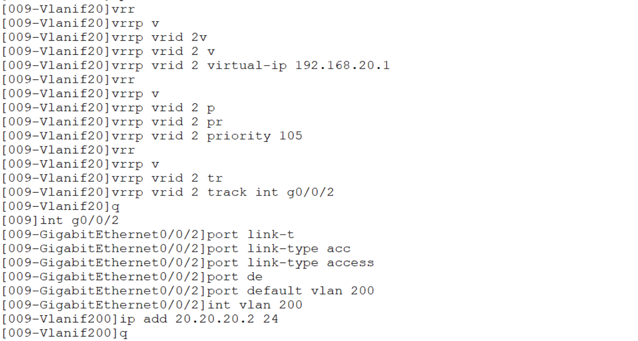 []vrrp vrid 2 virtual-ip 192.168.20.1//设置vrrp组1的虚拟ip地址