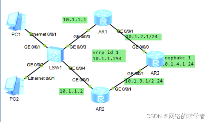 [R2-GigabitEthernet0/0/0]vrrp vrid 1 virtual-ip 10.1.1.254