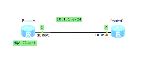 如图所示,RouterA作为NQA客户端,测试RouterB是否可达。