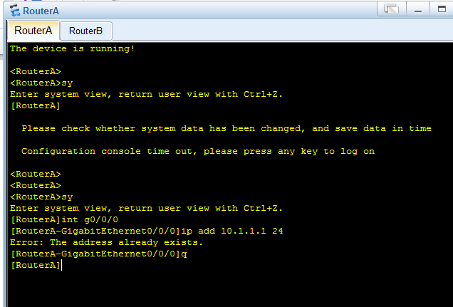 - 配置RouterA的IP地址