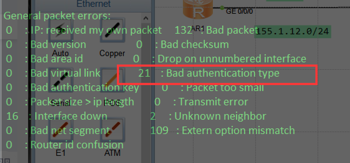 dis ospf error 查错发现,认证类型有问题(因为支配了一边)