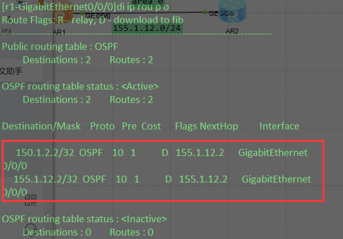 ospf enable 1 area 0.0.0.1 #改为area 1