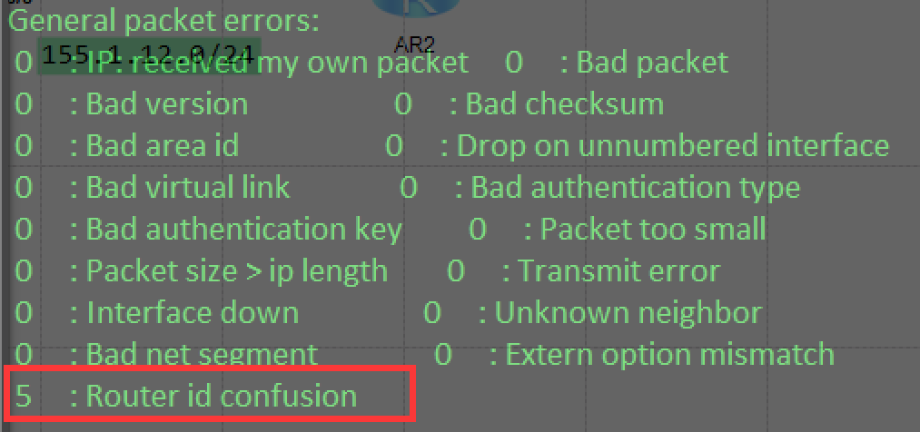 dis ospf error #查看ospf报错信息(多查几遍,错误的位置数字会增加)