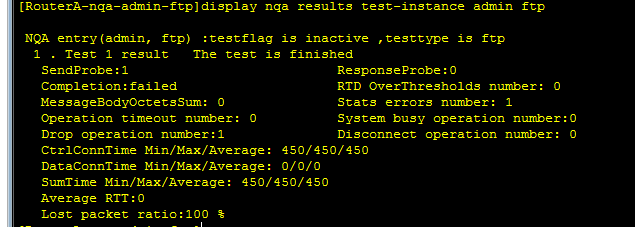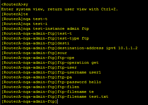 3.配置RouterA的FTP类型的NQA测试例