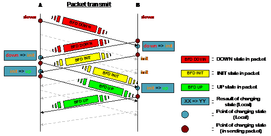 以BFD会话连接建立过程为例,简要介绍状态机迁移过程: