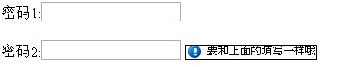 <label>密码2:</label><input type="text" id="txtPass2" value=""/><span id="txtPass2Tip"></span>