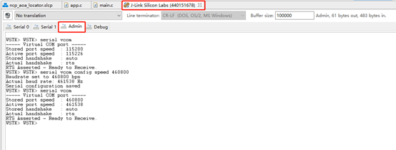 Silabs官方开发板上的Jlink CDC串口(VCOM)默认的波特率是115200,在普通的终端软件(如“串口调试助手”)里设置别的波特率是不起作用的。