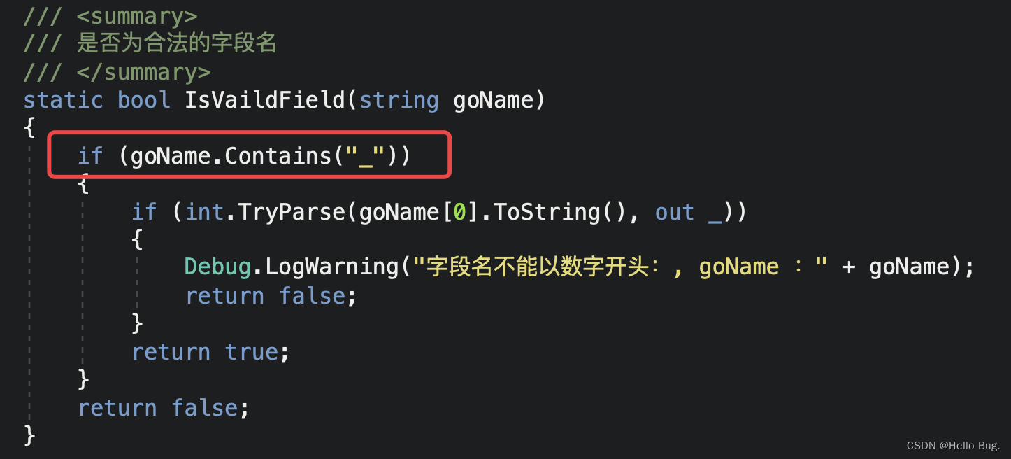 Debug.LogWarning("字段名不能以数字开头:, goName :" + goName);