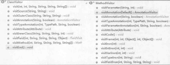 - 在类的处理过程中,会创建对应的FieldVisitor和MethodVisitor对象;