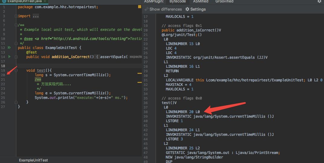 上述代码中 `onMethodEnter`进入一个方法时候回调,因此在这个方法中插入指令就是在整个方法最开始加入一些代码。我们需要在这个方法中插入 `longs=System.currentTimeMillis();`。在 `onMethodExit`中即方法最后插入输出代码。
