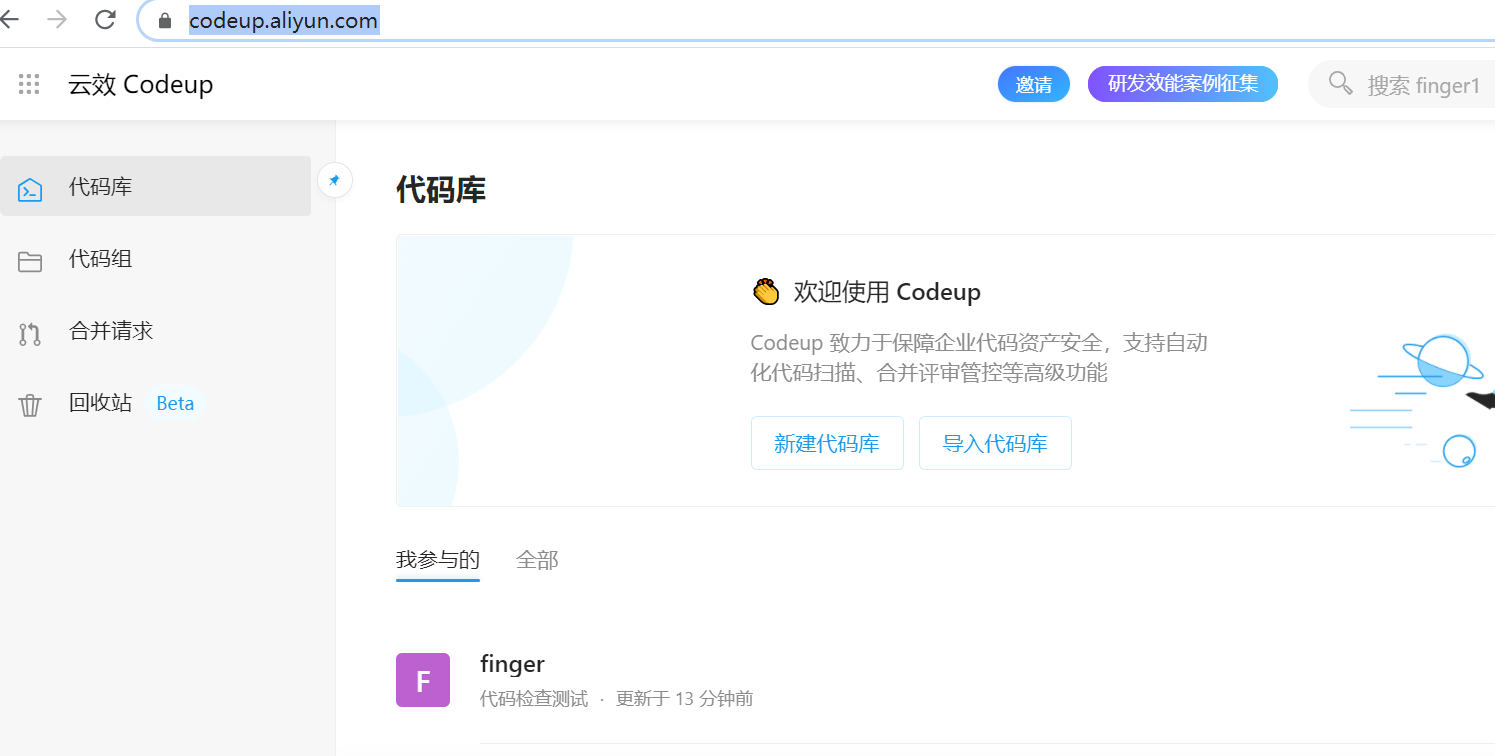 使用阿里云账号登录研发协同RDC平台,链接:https://codeup.aliyun.com/