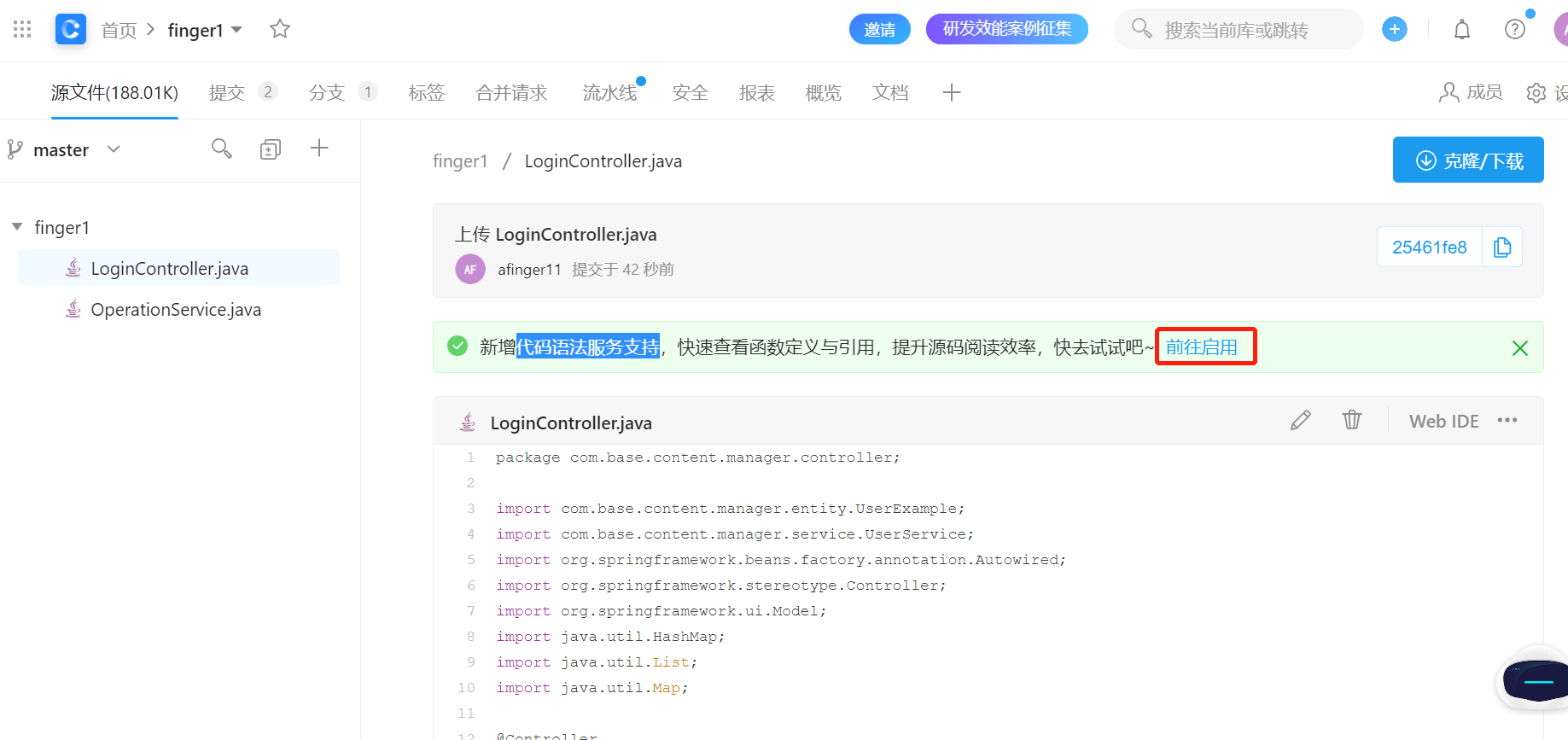 开启后,在刷新下看自己的提交文件,就会有提示哪里有问题了