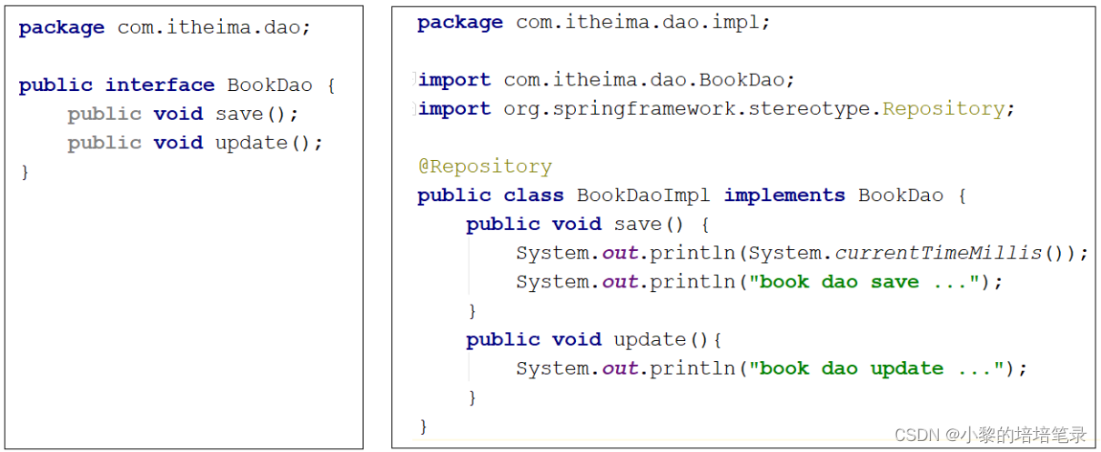 execution(void com.itheima.dao.impl.BookDaoImpl.update())因为调用接口方法的时候最终运行的还是其实现类的方法,所以上面两种描述方式都是可以的。