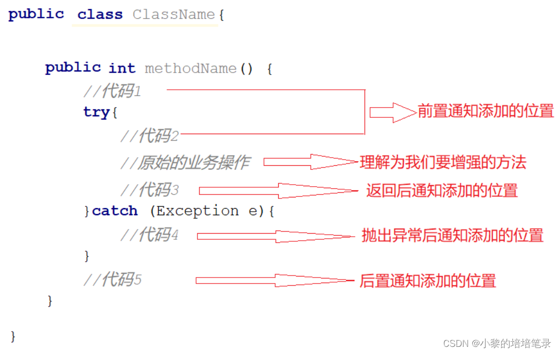 (5) 通知是一个方法,方法不能独立存在需要被写在一个类中,这个类我们也给起了个名字叫通知类