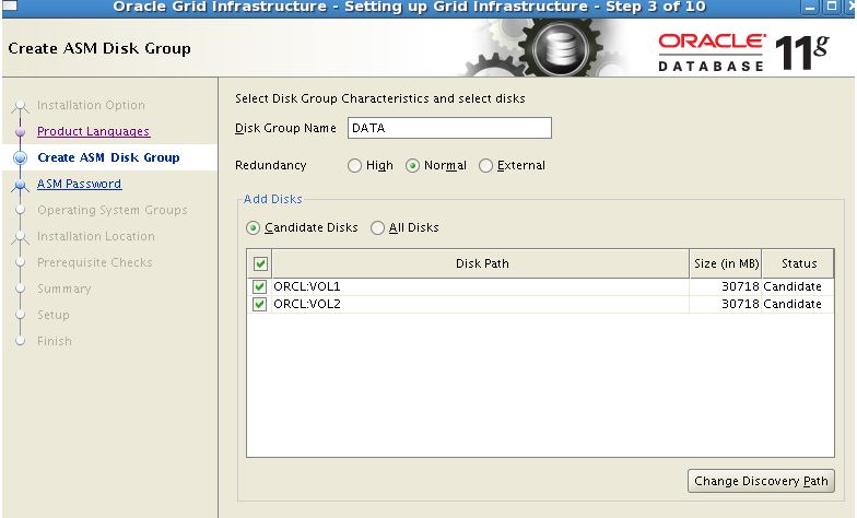 Marking disk "vol1" as an ASM disk: [ OK ]