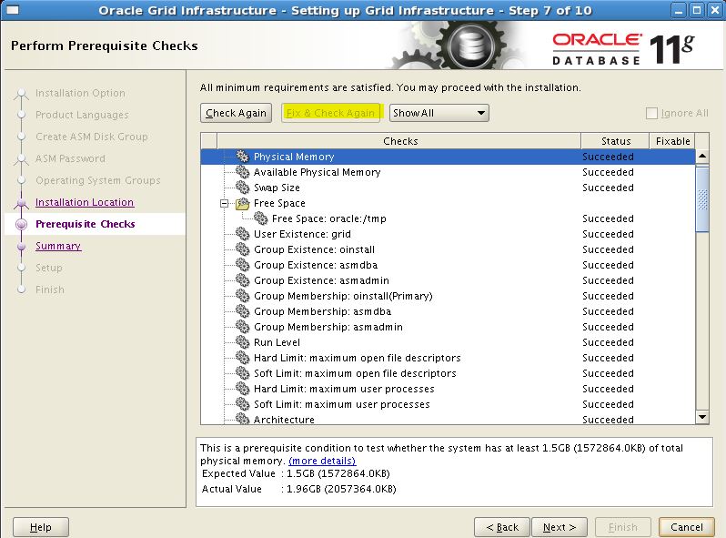 检查依赖关系,有些可以通过grid自带脚本修复,点下面的fix&Check Again,他会提示你跑某个脚本去修复。
