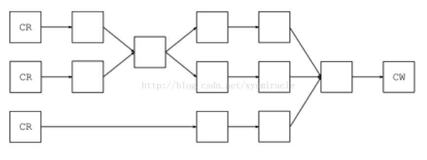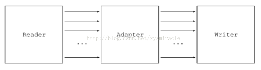 基于事件模型的ASM工具使用生产者-消费者模型转换/产生一个class文件。其转换过程中涉及到自定义的事件生产者,自定义的事件过滤器和自定义的事件消费者这三种组件。其中使用classReader来解析每一个class文件中的事件元素,使用自定义的各种基于方法/变量/声明/类注释的元素适配器来过滤和修改class事件元序列中的相应事件对象,最后使用ClassWriter来重新将更新后的class事件序列转换成class字节码供JVM加载执行。整个生产/转换class文件的过程如下图所示,起点和终点分别是CLASSREADER(CLASS文件解析器)和ClassWriter(class事件序列转换到class字节码),中间的过程由若干个自定义的事件过滤器组成。