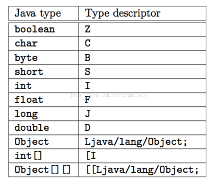 原java类型与class文件内部类型对应关系