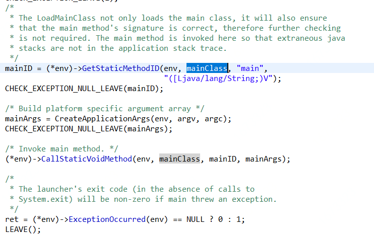 main方法是Java应用启动执行的入口方法,这个方法是怎么执行的了?可以从JVM的启动入手分析,参考《Hotspot启动和初始化源码解析》,关键代码在OpenJDK jdk/src/share/bin/java.c中的int JNICALL JavaMain(void * _args)方法,如下图: