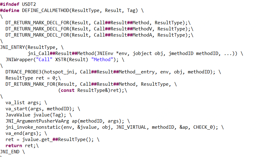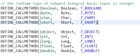 通过宏的方式实现不同NativeType和type下的方法定义,以Call<type>Method为例,如下图: