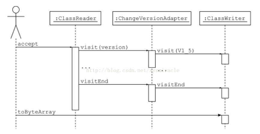 另外,在处理整个class文件处理过程中,classVistor抽象类中的方法访问需满足下面的次序。