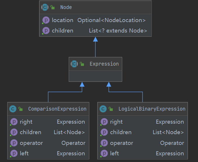 在了解了表达式构成后,先定义两个基础的SQL语法树节点,类图如下: