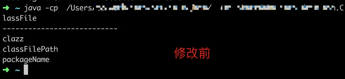 ClassReader classFileR = new ClassReader("com.x.demo.asm.ClassFile");//读取需要增加Field字节码文件 ClassWriter tClassWrite = new ClassWriter(COMPUTE_MAXS);//写入CW AddFieldAdapter addDog2Class = new AddFieldAdapter(tClassWrite, 10, "DOG", "Ljava/lang/String;");//class visitor classFileR.accept(addDog2Class,0);// 拼接转换链 CR->CV->CW byte[] bytes = tClassWrite.toByteArray();//获取转换后的字节码 File classFile = new File("/Users/tz/work/x/src/main/java/com/x/demo/asm/ClassFile.class");//磁盘load到内存文件 FileOutputStream fout = new FileOutputStream(classFile);//输出流对象 fout.write(bytes);//写入磁盘